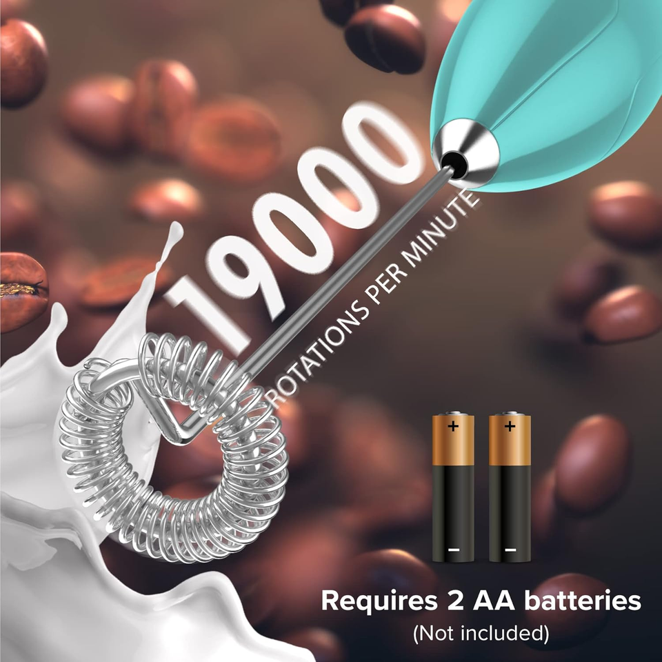 Powerful Handheld Milk Frother with Stand Battery Operated Foam Maker Frother Wand for Coffee (A Black) (No Stand Aqua)