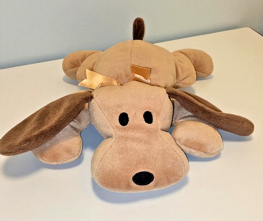 Features Floppy ears, embroidered eyes/nose, squeezable pillow body