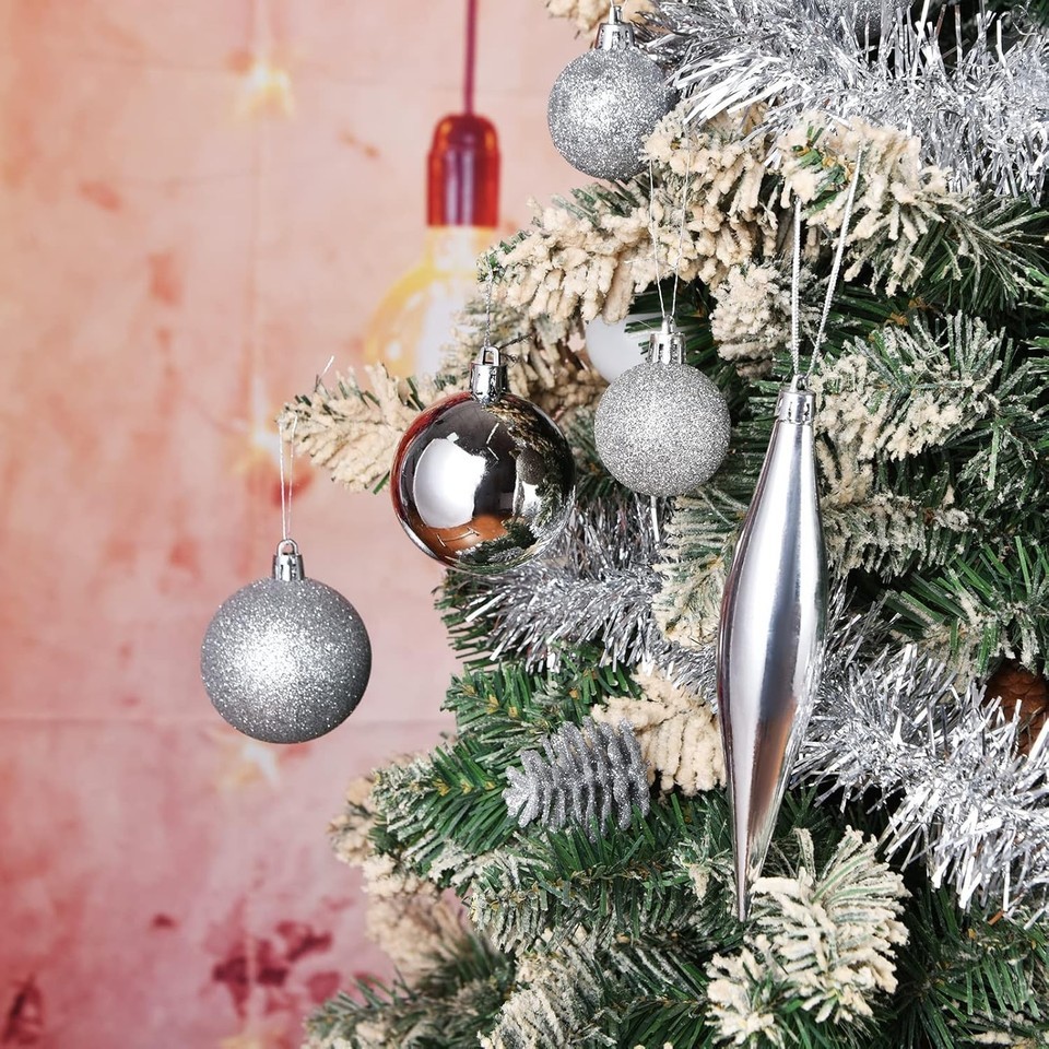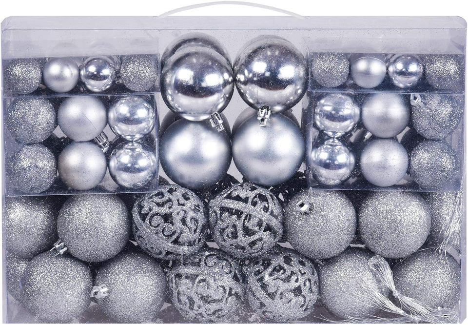 Christmas Balls Tree Ornaments, Shatterproof Christmas Decorations Set with Reusable Hand-Held Gift Package for Holiday Xmas Tree Decor (100, Silver)