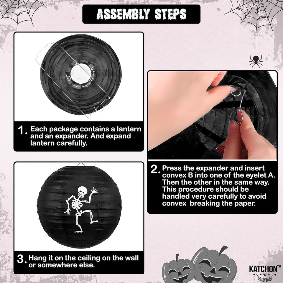 VERSATILE | EASY TO ASSEMBLE : Our Indoor Halloween Honeycomb and halloween banner indoor are incredibly versatile, a perfect fit for a variety of settings. It's easy to assemble. Each item takes just a few minutes to put together and hang up. Simply unfold each item and secure with the self-adhesive back of the fan or use the paper clips provided. Each accessory has a lanyard at the top and the lantern has a hook for easy hanging halloween decorations, halloween party decorations, scary halloween decorations, indoor halloween decorations, ghost party decorations.