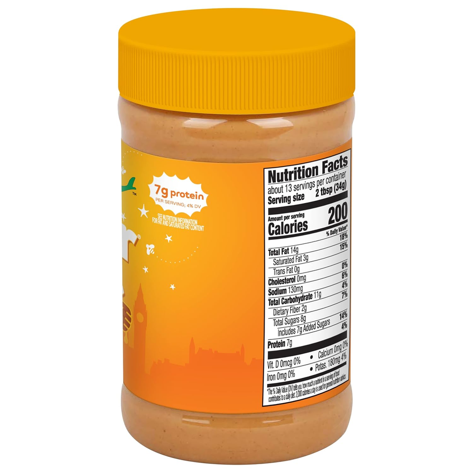 Peter Pan Creamy Honey Roasted Peanut Butter Spread is a little bit salty, a little bit sweet and a whole lot delicious. A sweet twist on a classic favorite, Peter Pan Peanut Butter is made with delicious roasted peanuts and is smooth and easy to spread no matter how you use it. Spread it, scoop it, dip it or bake it: Peter Pan Honey Peanut Butter can be used in a variety of ways in your favorite snacks, meals and desserts. Use Peter Pan Creamy Honey Roast Peanut Butter Spread to make a classic peanut butter and jelly, bake peanut butter cookies or dip apples and crackers in it for an easy peanut butter snack. This gluten free peanut butter and honey spread is made with no artificial colors, artificial flavors or preservatives, and this honey roast peanut spread has 7 grams of protein per serving. The 16.3 ounce screw top jar of peanut butter makes storage easy.