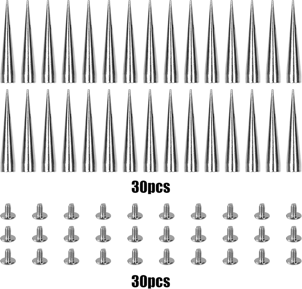 30PCS 40MM Spike and Studs Silver Cone Spikes Punk Bullet Large Leather Rivets S