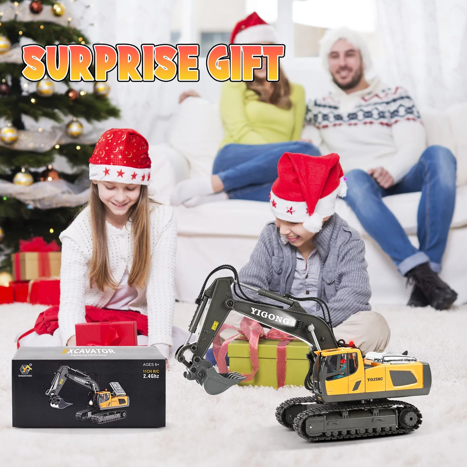Remote Control Excavator,11 Channel RC Excavator Toys, Rechargeable Construction