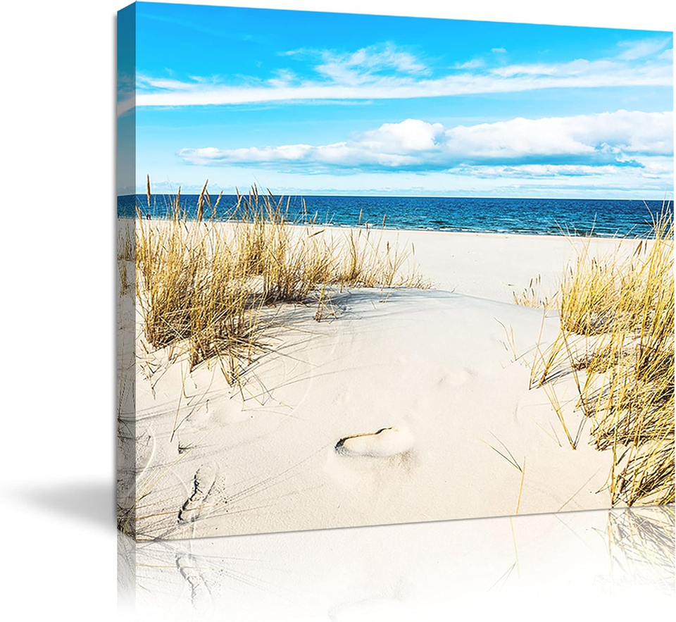 Beach Pictures Wall Art for Bathrooms Canvas Framed Seacoast Theme Wall Decor for Bedroom Modern Bathroom Coastal Pictures Wall Decor for Kitchen Home Ocean Artwork for Wall Decoration Size 14X14