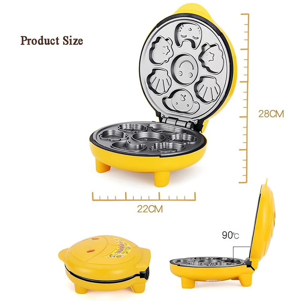Cartoon Mini Waffle Maker- Makes 7 Fun, Different Shaped Waffles