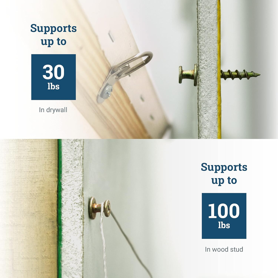 Heavy-Duty Support: Bear Claw picture hangers are perfect for hanging pictures and art; supports 30 pounds in drywall without anchors and up to 100 pounds in wood studs for reliable display