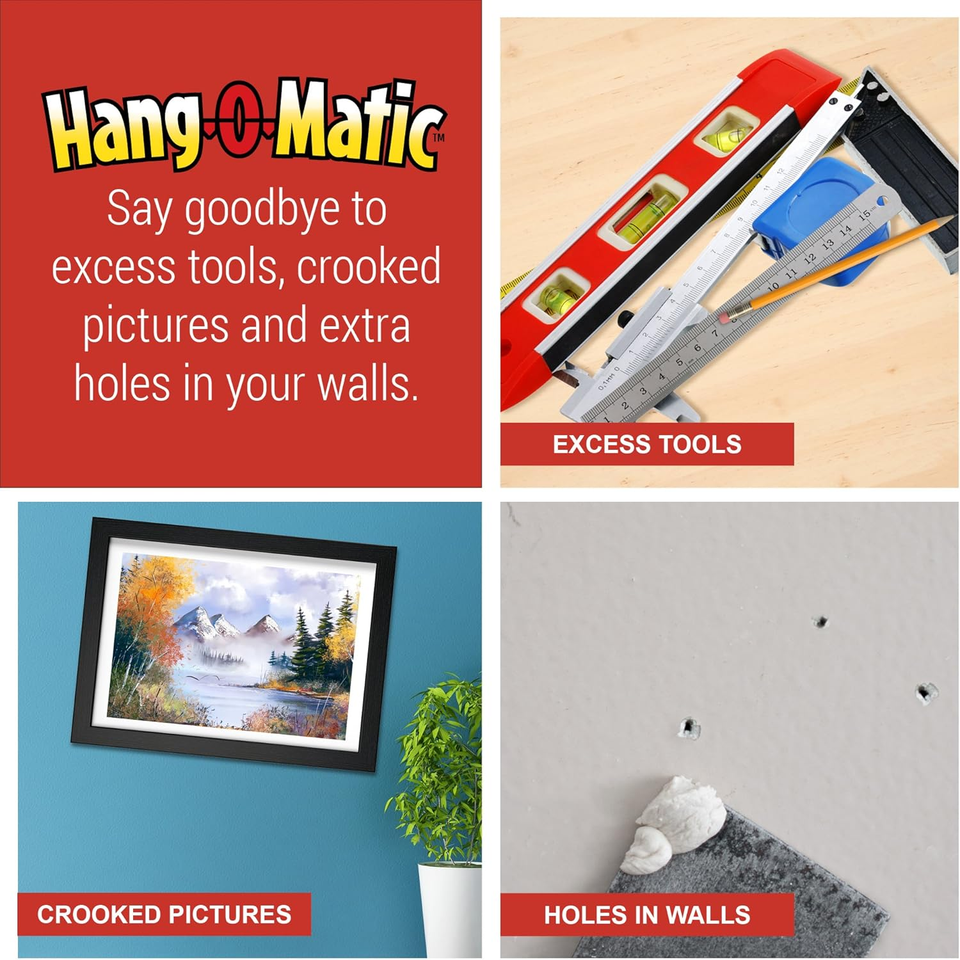 ALL-IN-ONE PICTURE HANGING TOOL. It?s difficult to hang pictures, mirrors, shelves, TVs and other items straight the first time. Designed to make the process easier, the Hang-O-Matic measures, levels and marks the wall at the same time.