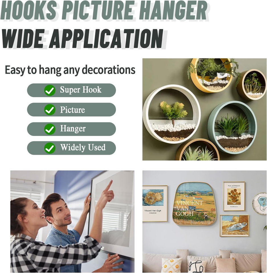 20Pcs Super Hook Picture Hangers and Office Pack, Drywall Hooks for Hanging Pictures, Wall Hooks, Picture Hangers, Picture Hanging Kit, Hang Art, Clock, Shelves, Mirrors