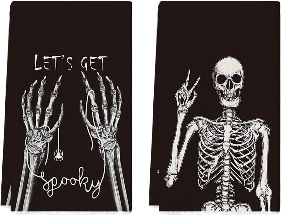Skeleton Hand Spooky Halloween Kitchen Towels Dish Towels, 18X26 Inch Bones Let'S Get Decoration Hand Towels Set of 2