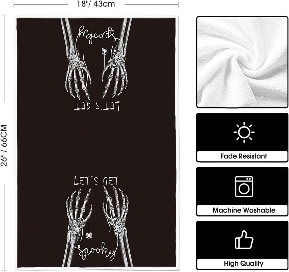 Skeleton Hand Spooky Halloween Kitchen Towels Dish Towels, 18X26 Inch Bones Let'