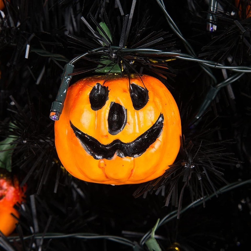 This tree is decorated with 12 small pumpkins and 30 led purple lights, creating a scary scene, very suitable for Halloween theme.