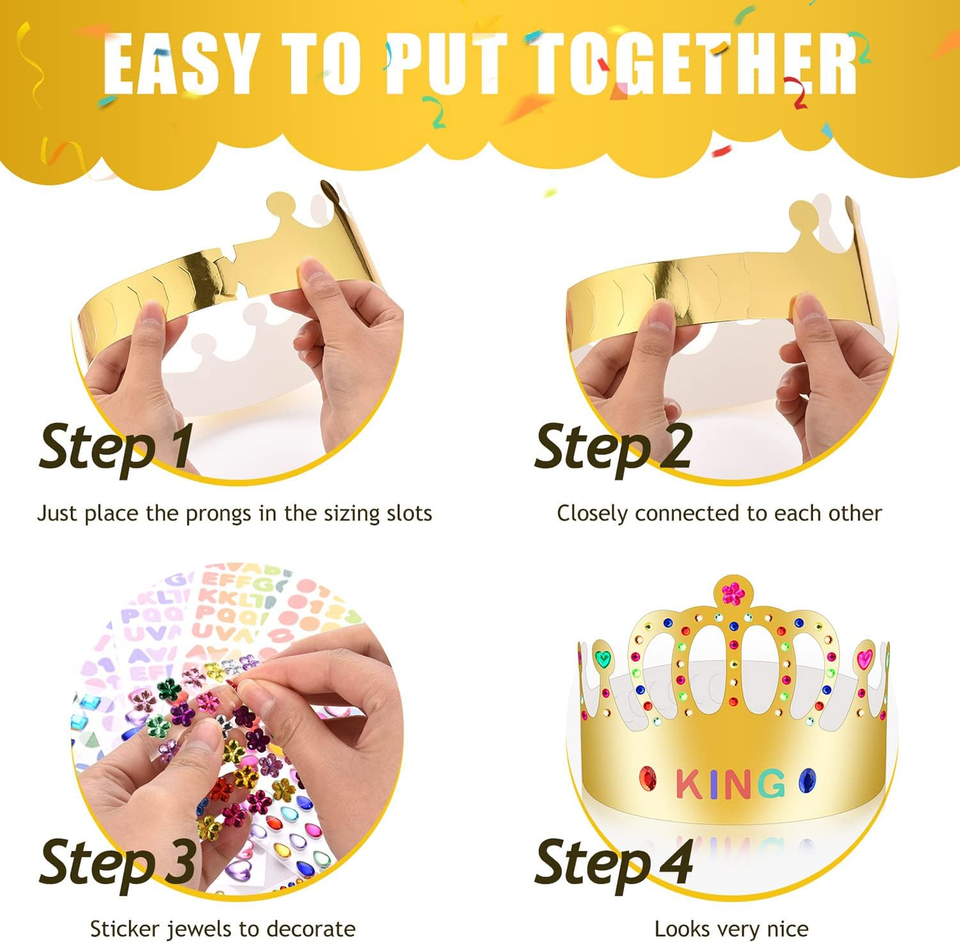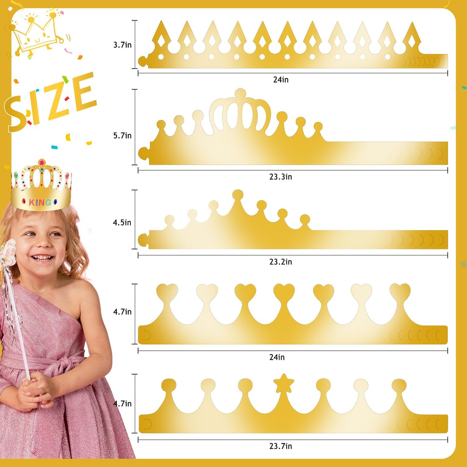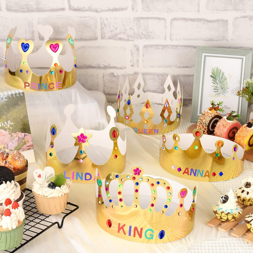 Gold Paper Crowns, Diy Birthday King Crowns Craft to Decorate, Paper Prince Princess Crown Hats for School Classroom