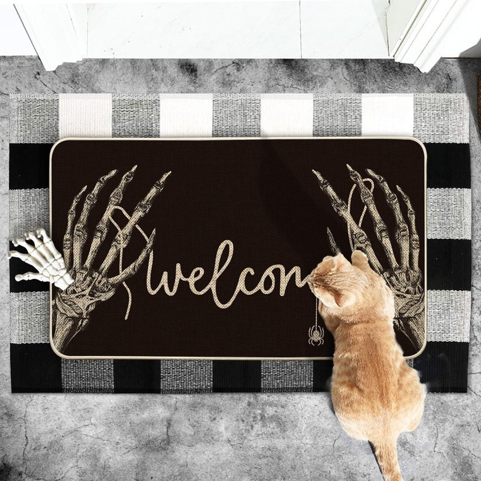 Hand Bone Halloween Welcome Doormat, Home Decor Low-Profile Switch Rug Door Mat