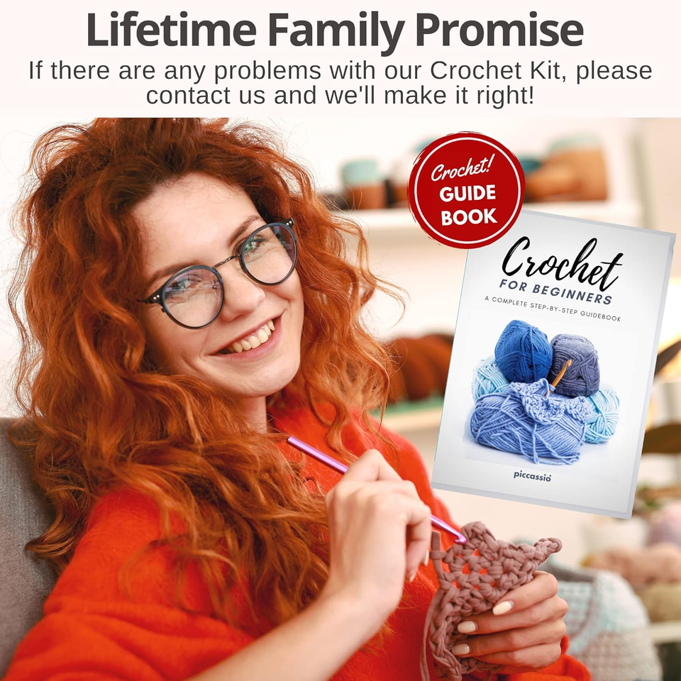 Stress-Free Purchase: At Piccassio, we prioritize your satisfaction. If our beginning crochet kit for adults doesn't meet your expectations, simply reach out. Your journey with this crochet set for beginners comes with support every stitch of the way!
