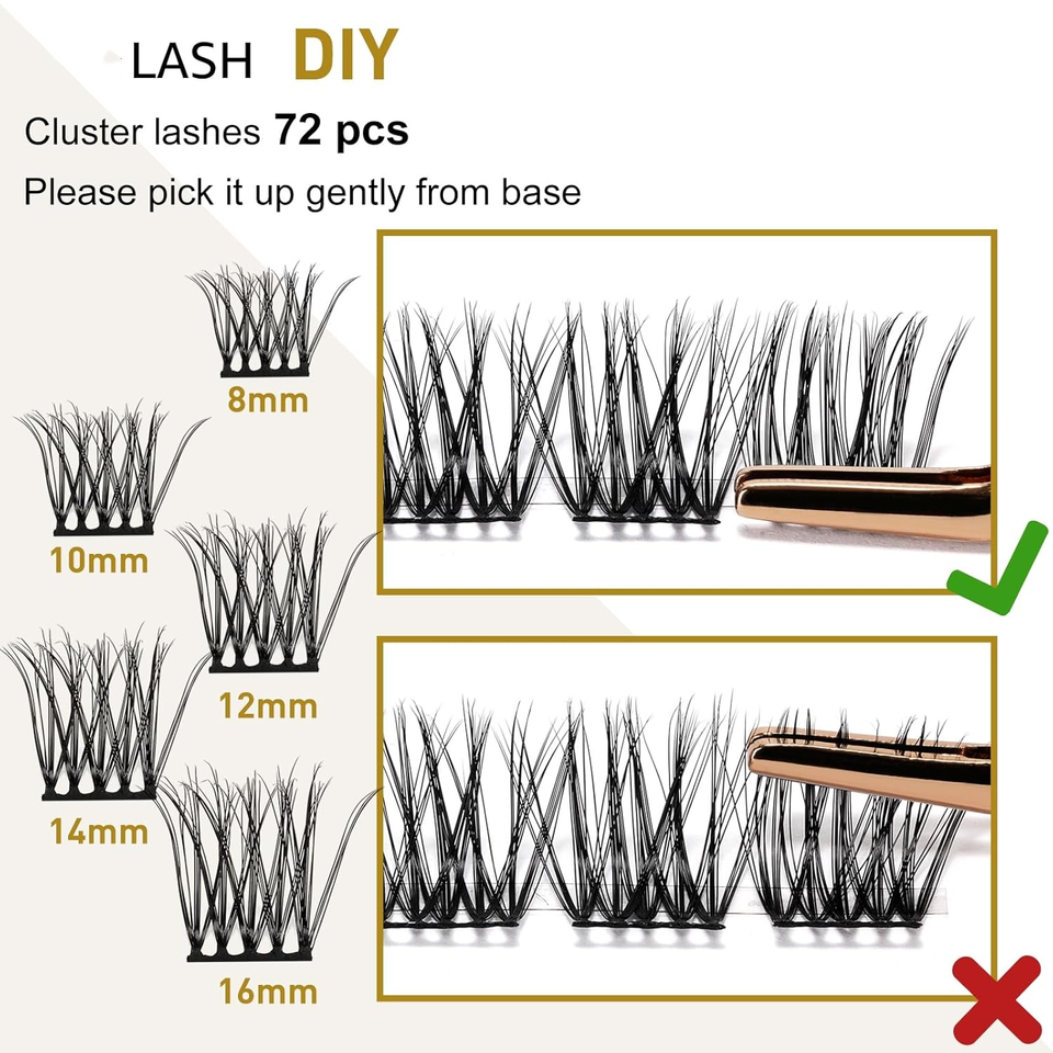 ?Lash Clusters DIY at Home?: 72 clusters in one tray. You can apply cluster lashes at home by yourself, and create a recent super popular manga effect. Easy to put lashes on, gorgeous results, and lash clusters are not easily fall apart. Clusters take less time to complete each eye. Now save so much money and time.