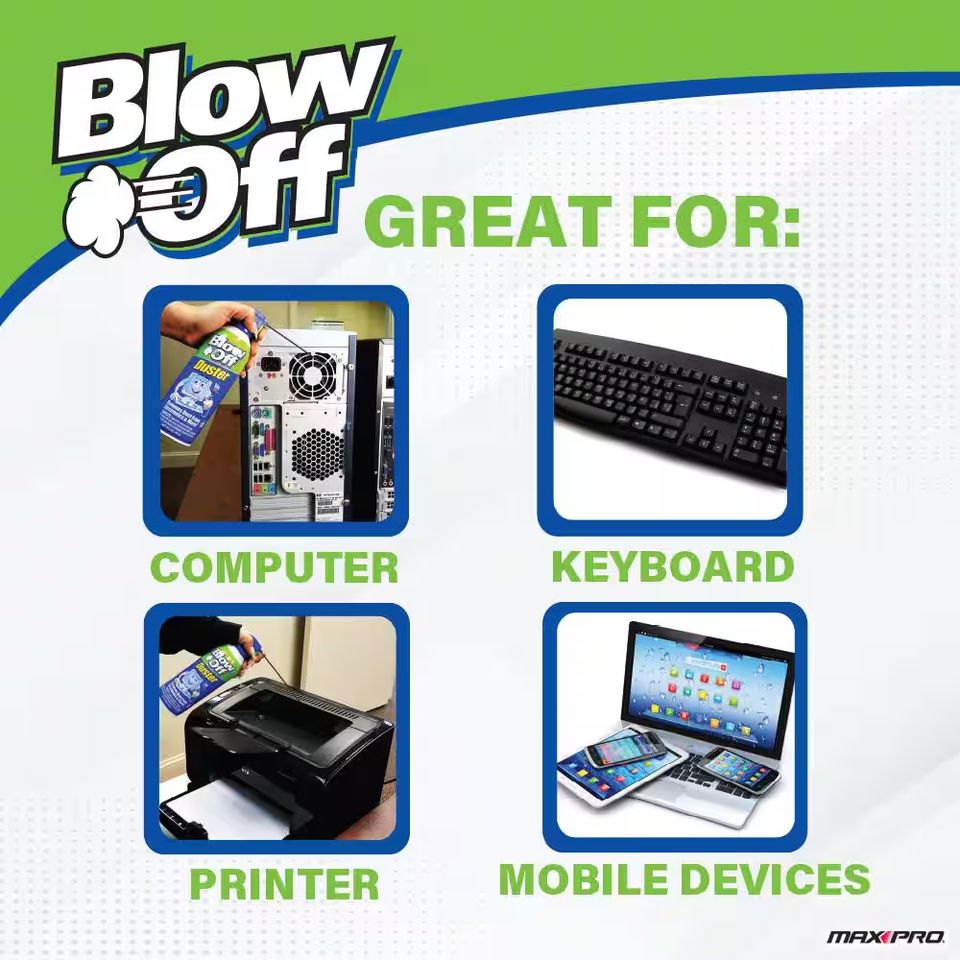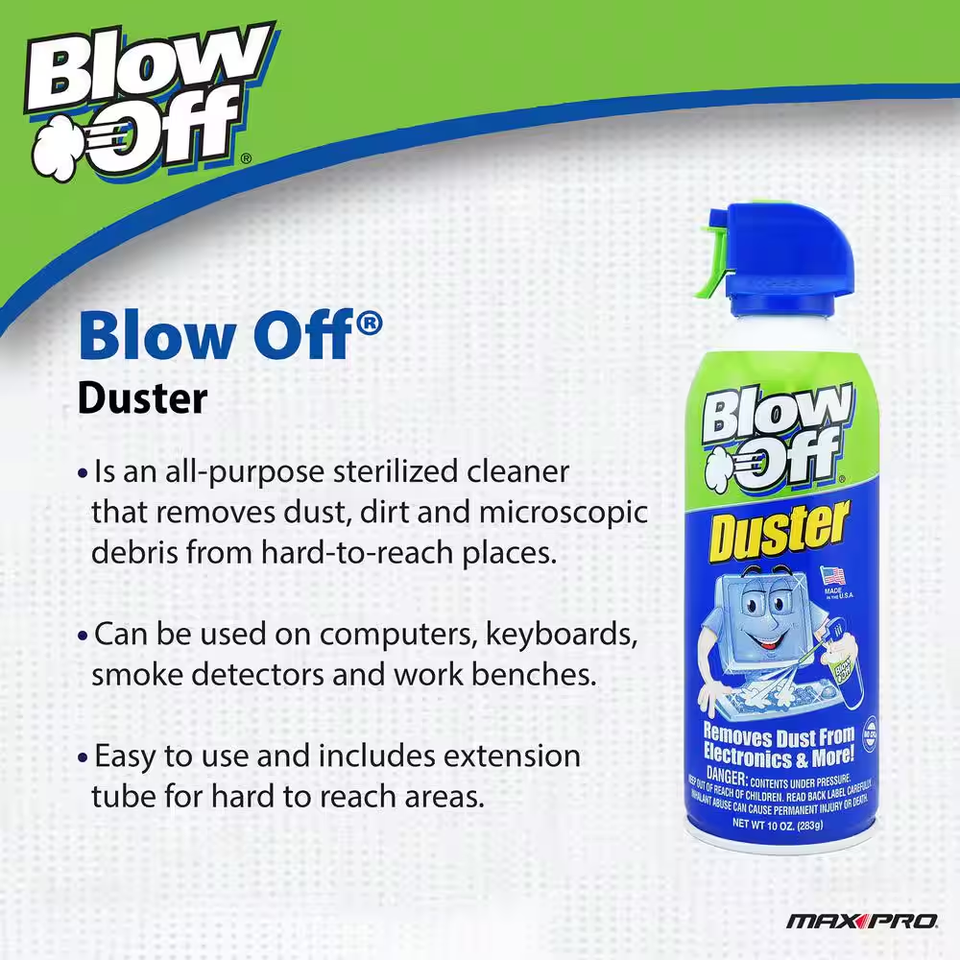 2-pack of all-purpose sterilized canned air that removes dust, dirt and microscopic debris from hard to reach places. Its ozone safe. Defined as Non-Flammable, Non-toxic and no bittern, no nasty smells or residue left on the surface. Air duster is great for cleaning electronics, power tools, workbenches and many other things around your home, office or workshop.