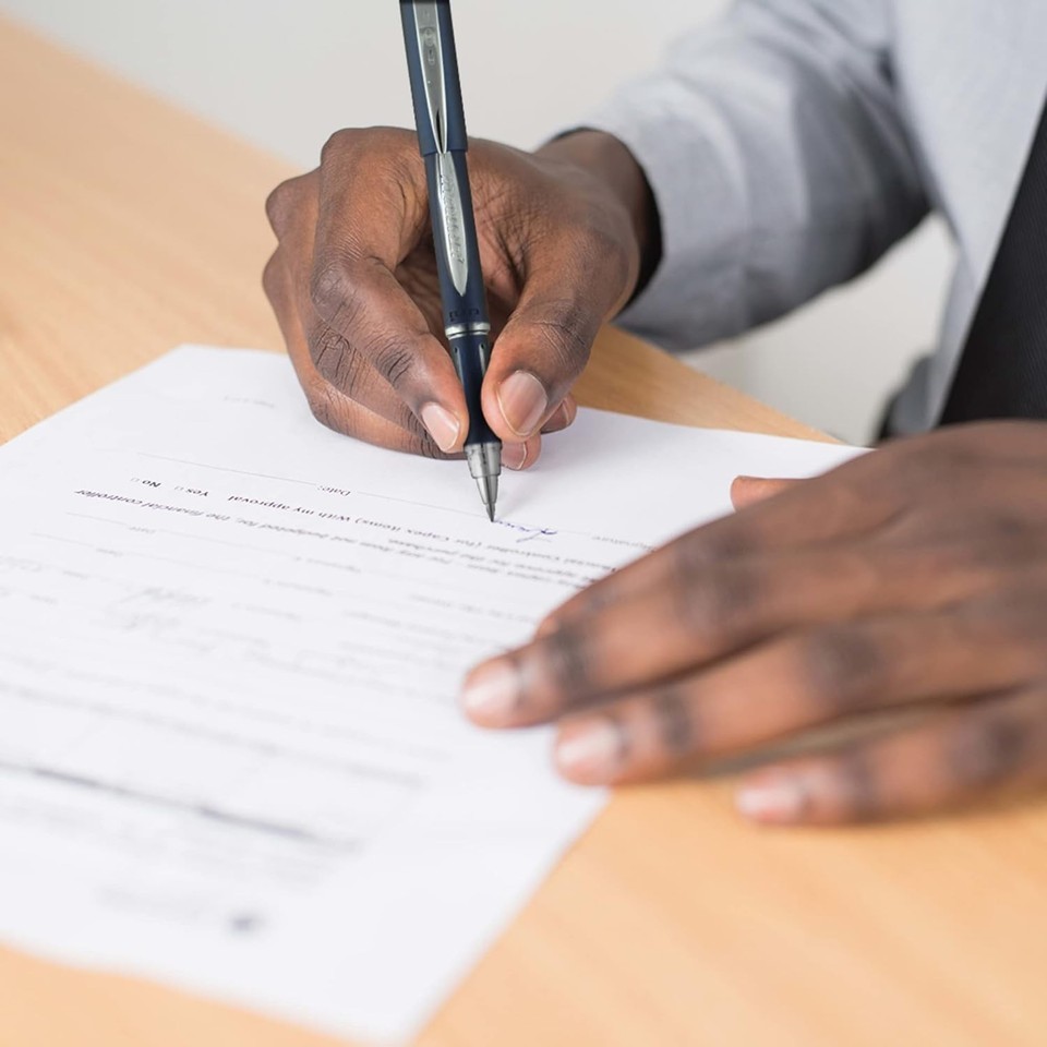 Comfort grip pens have uni Super Ink that protects against water, fading and fraud.