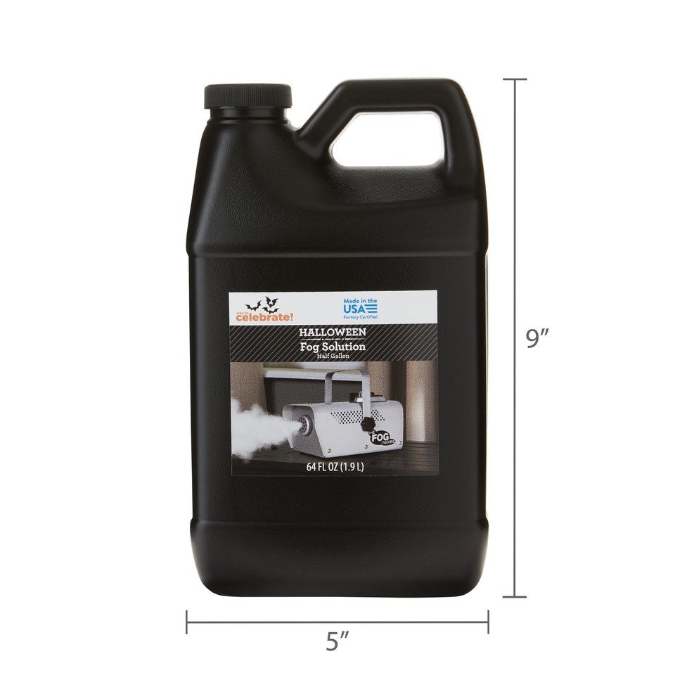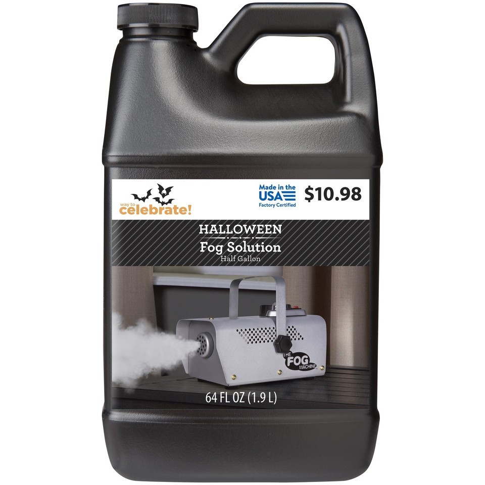 Way To Celebrate Halloween Fog Solution, 64 fl oz Comes in a 64 fl oz half-gallon jug for extended use Produces thick long-lasting fog when used in standard fog machines Perfect for haunted houses dance parties outdoor scenes or Halloween events Pair with other Way To Celebrate decorations and accessories