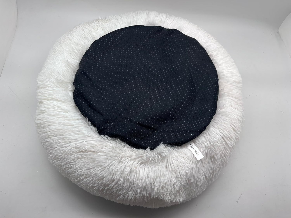 Cat and Dog Bed, 20''X20'' Washable Donut, Soft Plush Pet Cushion, Waterproof Bottom, Fluffy Calming Self-Warming for Indoor Cats, Sleep Improvement, White