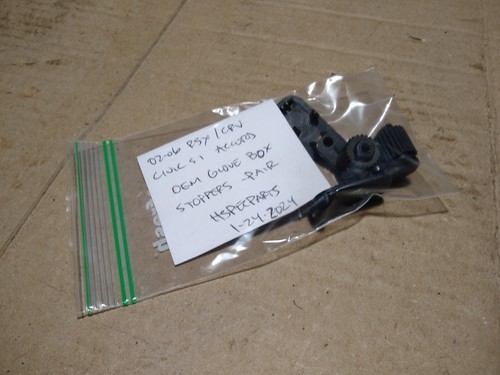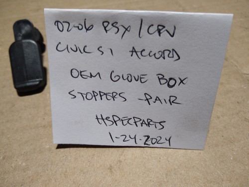 GOOD USED CONDITION. PAIR OF GLOVE BOX DOOR STOPPERS FROM A 2005 ACCORD. FITS MOST 2000+ HONDA AND ACURA GLOVE BOXES. SHIPS USPS WITHIN A BUSINESS DAY OF PAYMENT.