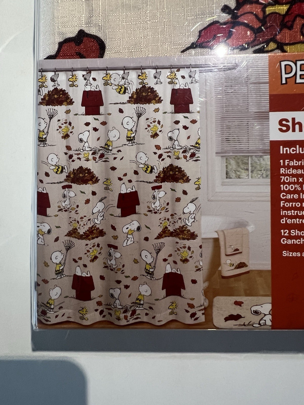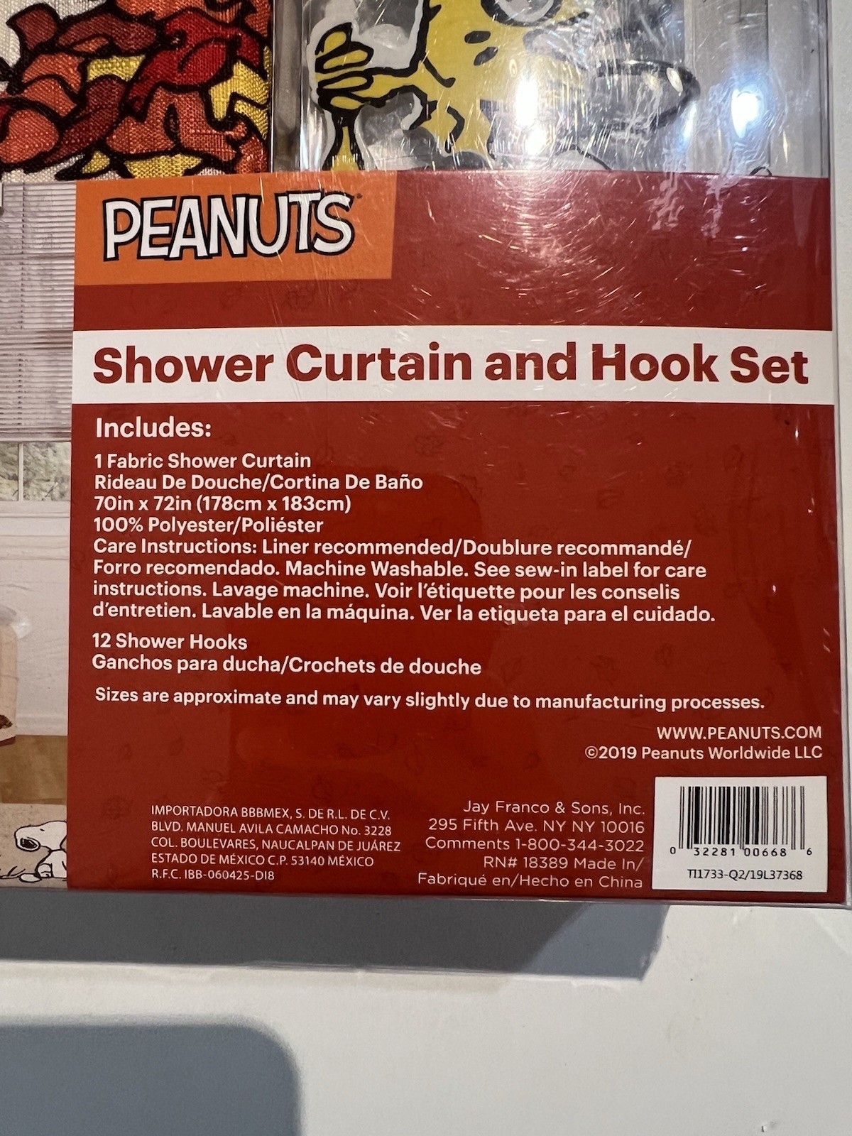 The Peanuts shower curtain and hook set is a charming addition to any bathroom, featuring a playful design that is perfect for adding a touch of fun to your shower routine. The set includes curtain hooks, making it easy to hang the curtain securely in place. Suitable for showers, this curtain set is a cute and practical choice for enhancing your bathroom decor.