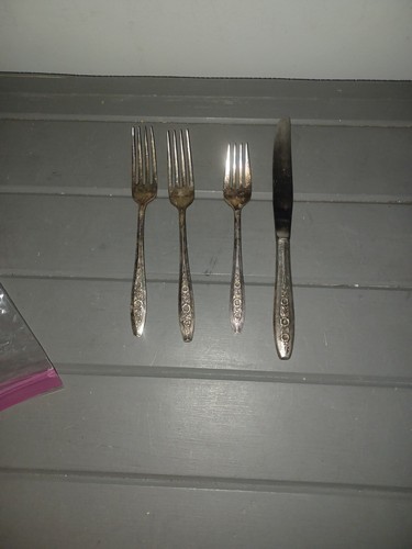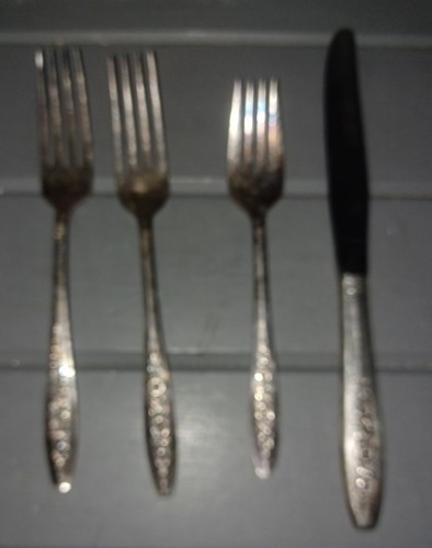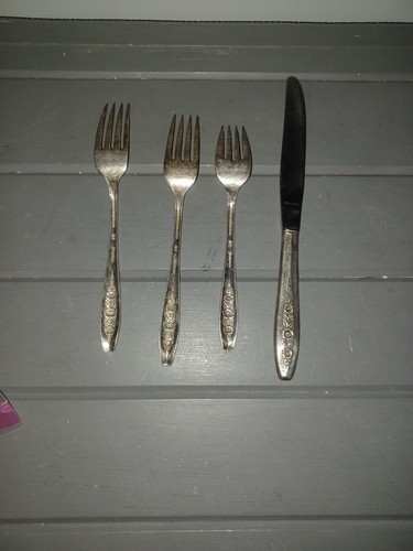 Wm Rogers International Silver Plated Primrose Lot of 4 Forks Knife