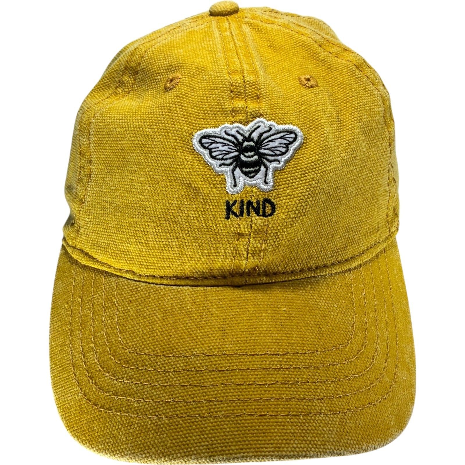 Autumn Gold Embroidered Bee Kind Washed Cotton Twill Strapback Baseball Hat