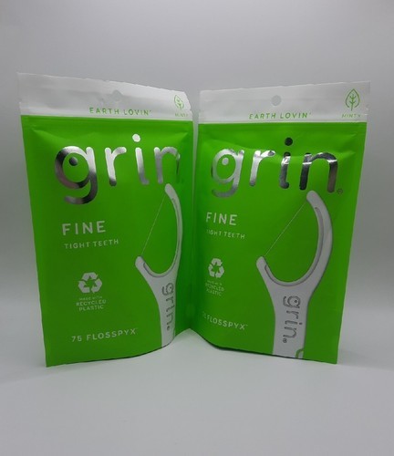 (2 pack) Earth Lovin' Grin Oral Care Fine Flosspyx Minty 75 ct each Floss Picks.