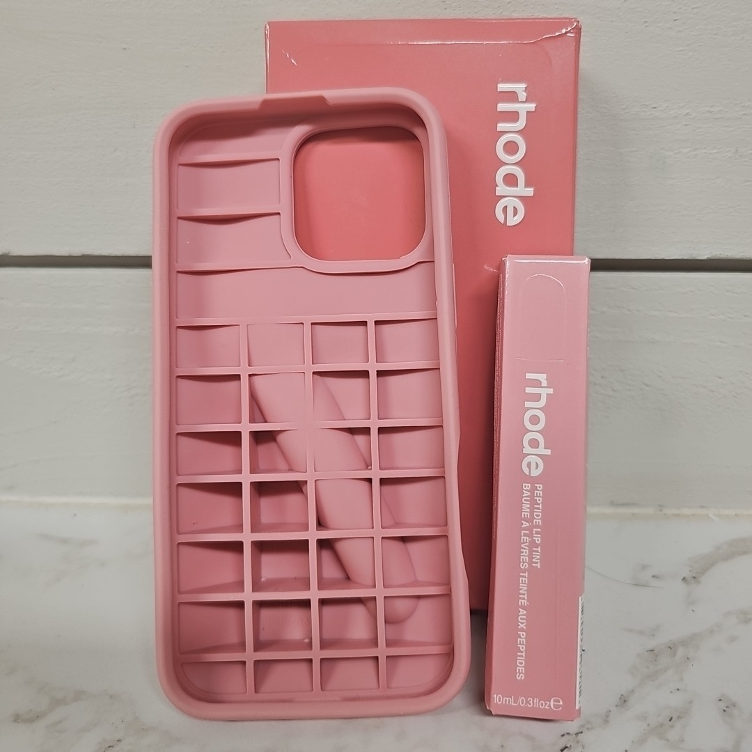 The Rhode Phone Case for iPhone 16 Pro Max Ribbon Complete With Box is a luxurious fitted case in pink color, specifically designed for the Apple iPhone 16 Pro Max. Made of silicone, gel, and rubber, this protective skin includes a tinted lip gloss. This high-quality product from Rhode includes a protective skin and comes in its original packaging, making it a perfect choice for those looking to keep their device safe and stylish.