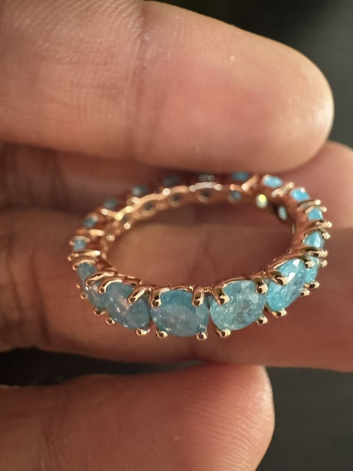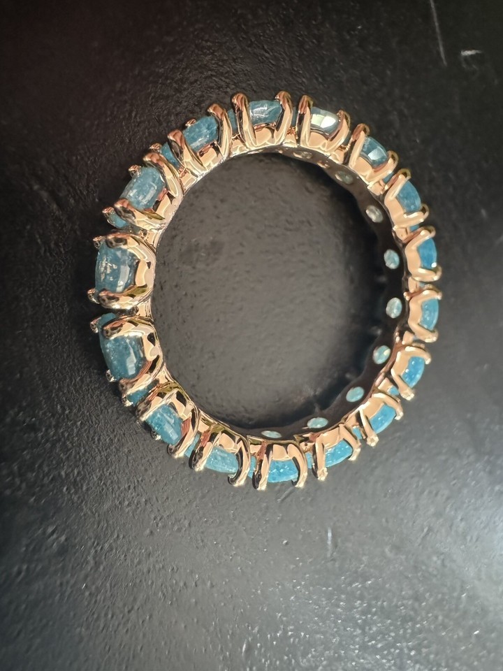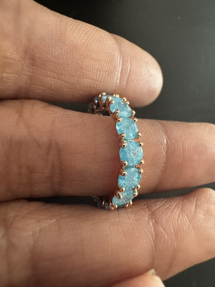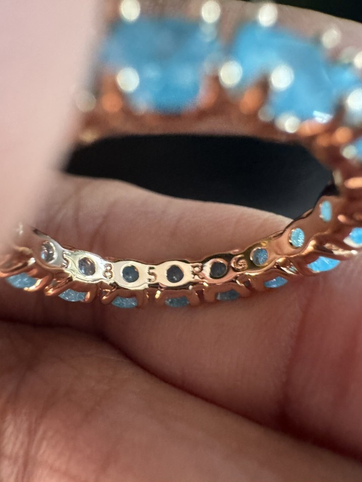 585 RG 14k Rose Gold Stamped Halo Frost Blue Gemstone Size 7 Ring