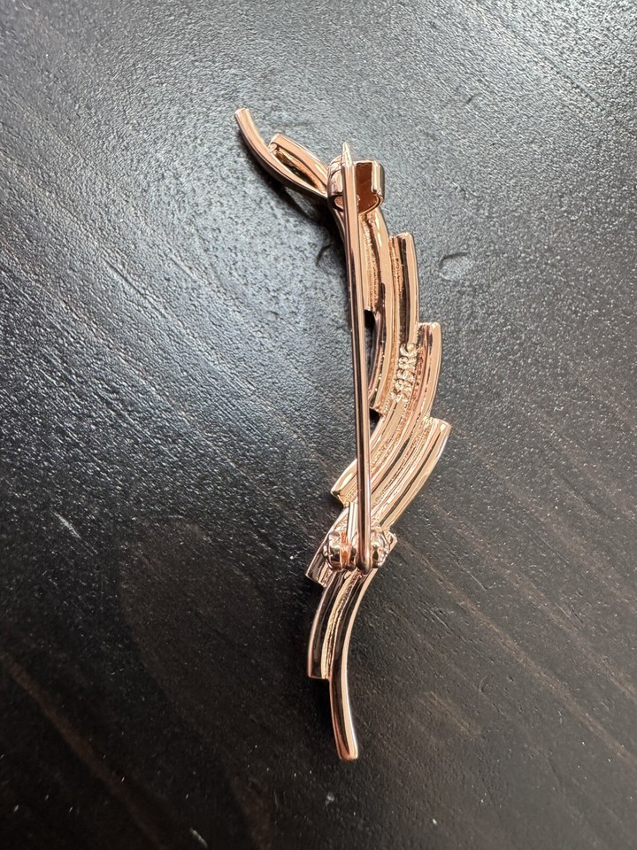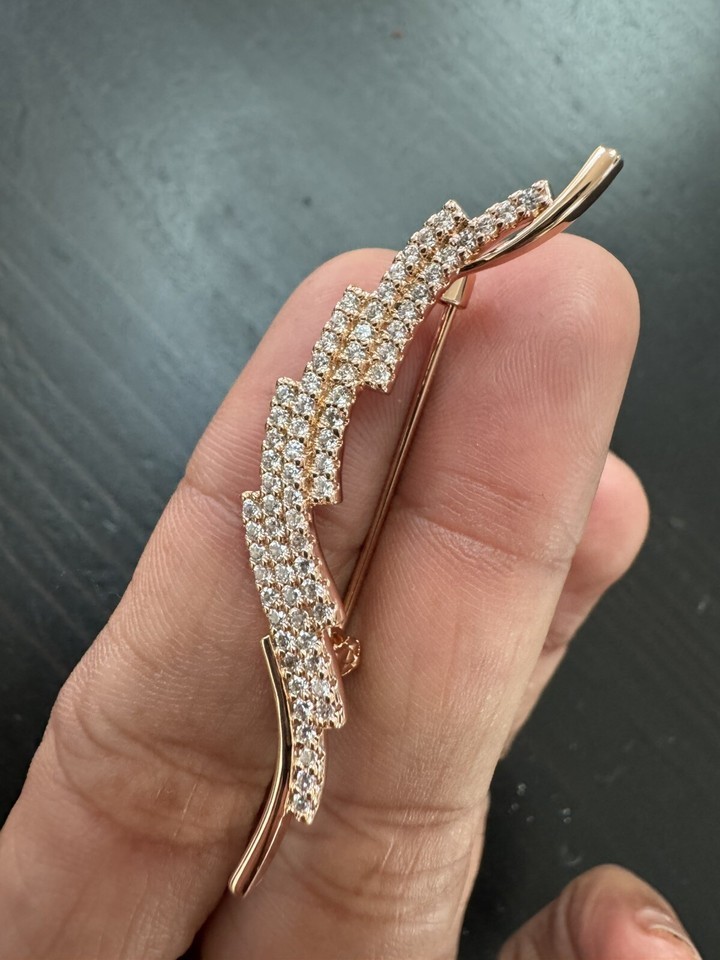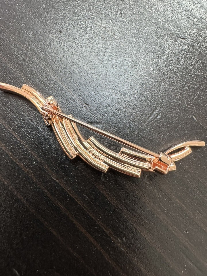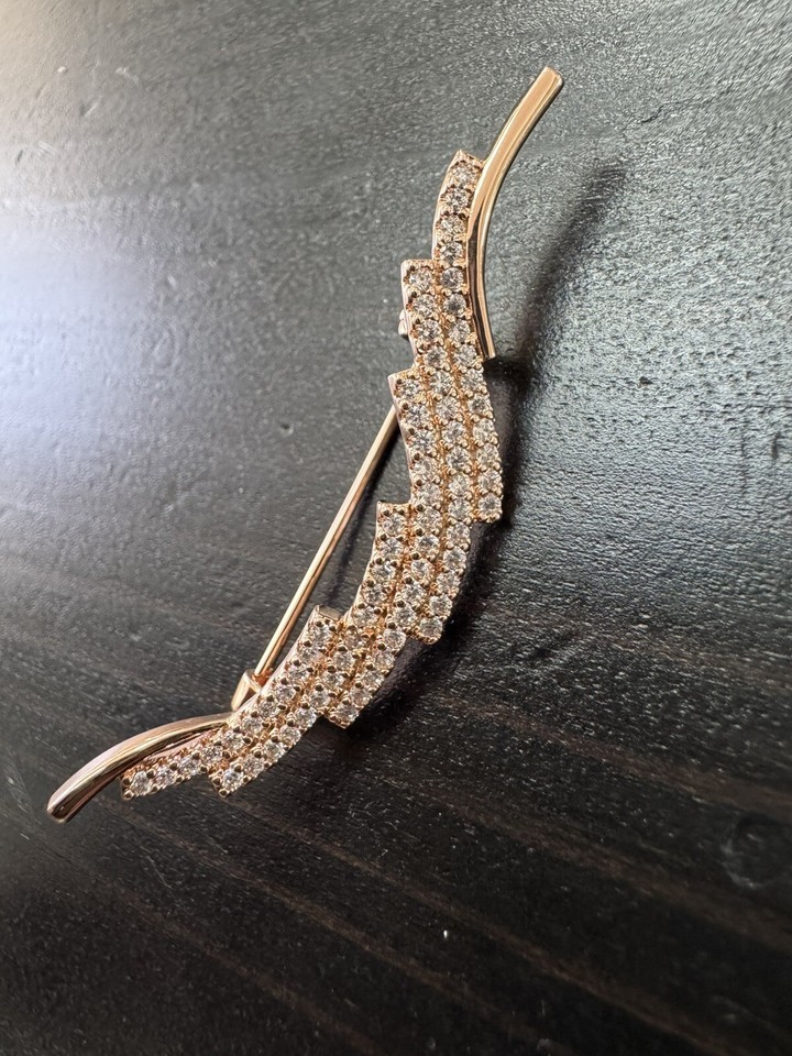 585 14K RG Rose Gold Stamped 2” Natural Zircon Symmetry Sparkle Brooch