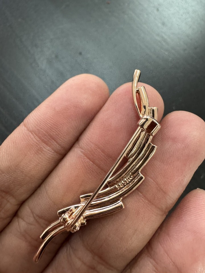 585 14K RG Rose Gold Stamped 2? Natural Zircon Symmetry Sparkle Brooch