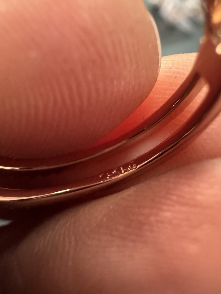 "Hallmark stamped 585RG ? '585' indicates 14K, and 'RG' stands for rolled gold. Rolled gold contains more real gold than regular fashion jewelry, making it more durable and valuable. It's considered part of the fine jewelry category and was commonly used in vintage pieces."