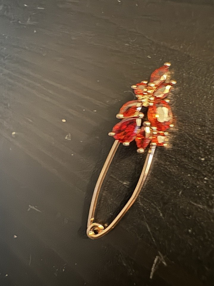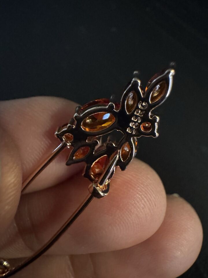 585 14K RG Rose Gold Stamped 1.25? Natural Zircon Cognac Allure Brooch Pin