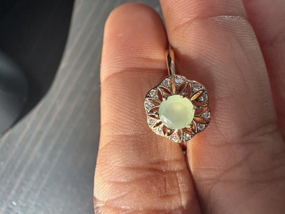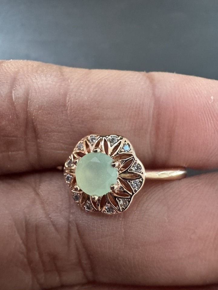 585 14K RG Stamped Delicate Mint Round Crystal Size 7 Ring