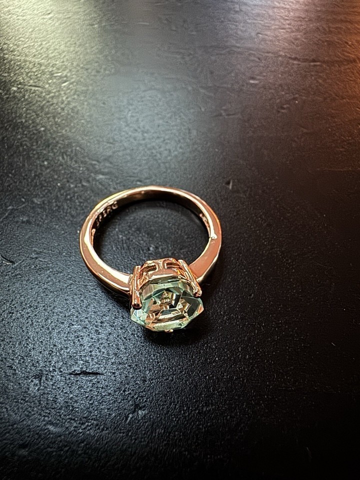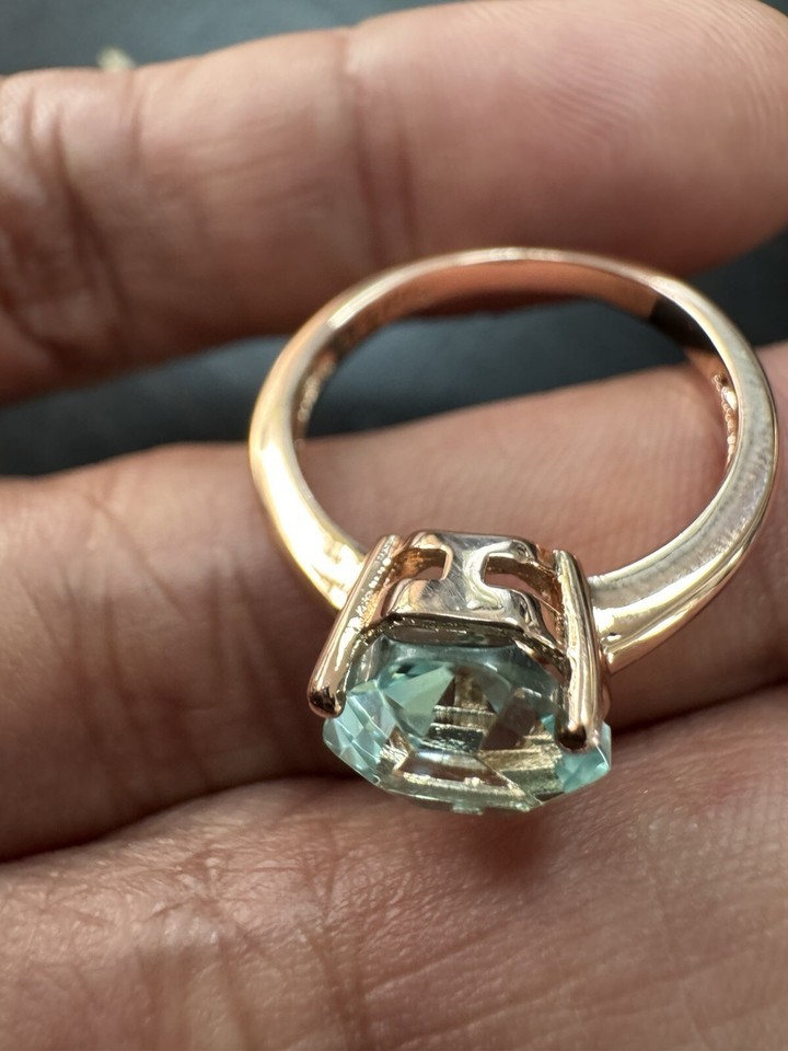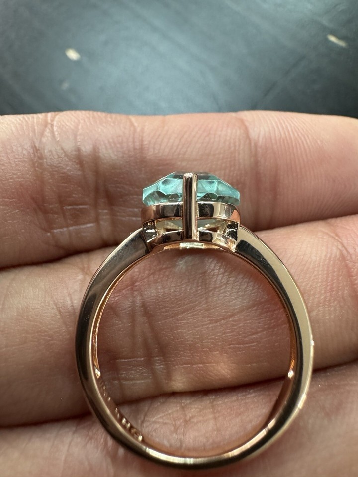 585 14K RG Rose Gold Stamped Aqua Marina Gemstone Size 7 Ring
