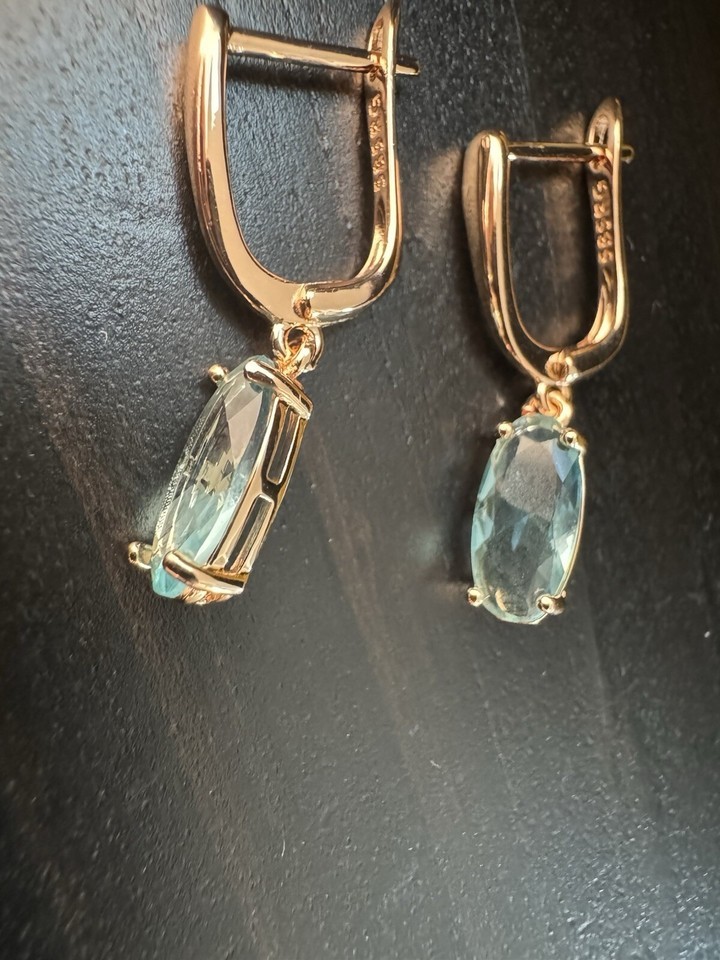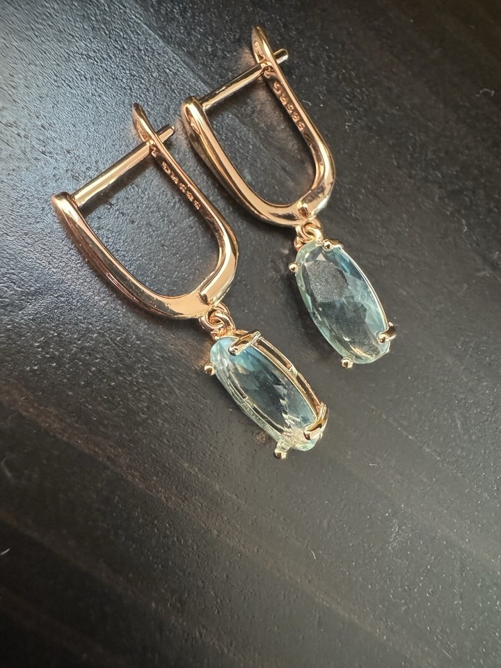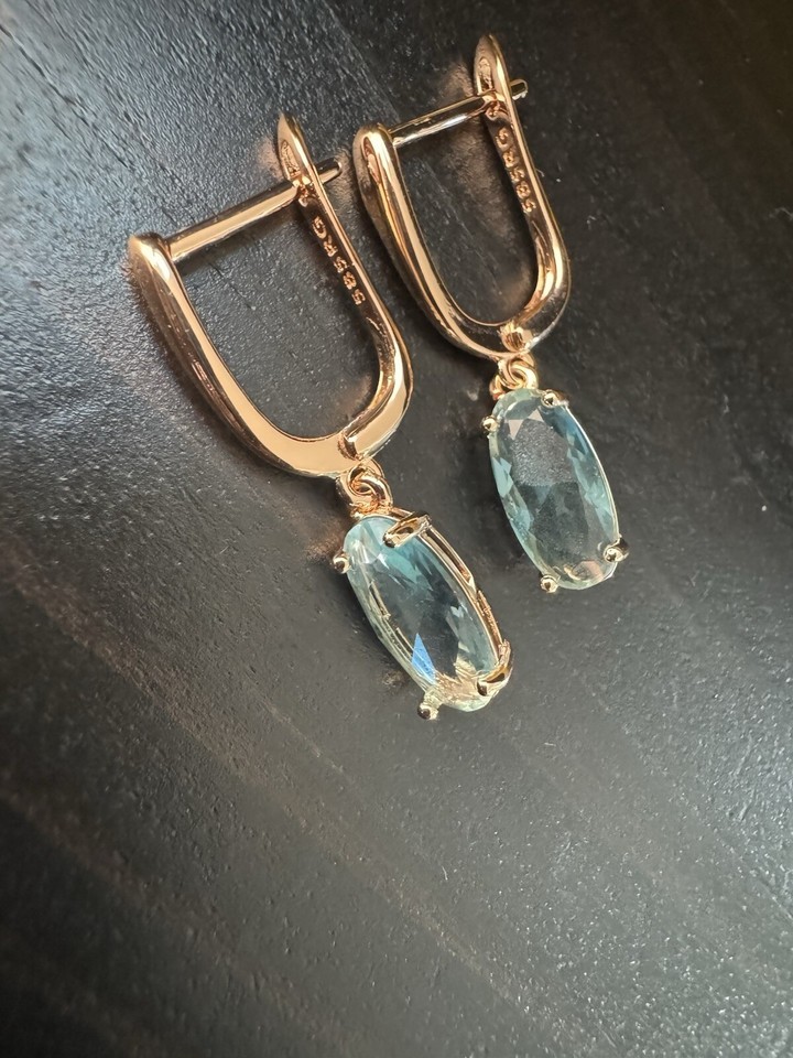 585 14K RG Stamped Aqua Marina Sparkle Dangle Stud Earrings