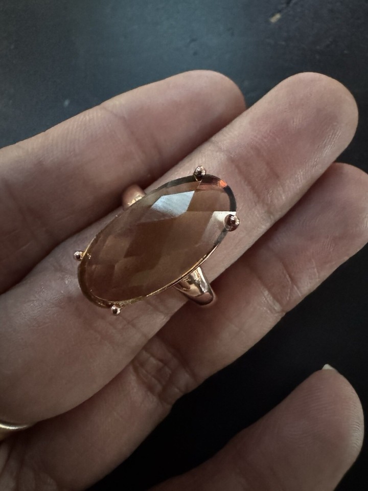 585 14K RG Stamped Oval Champagne Brown Gemstone Size 7 Ring