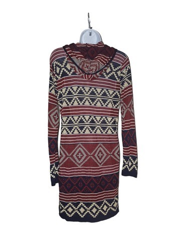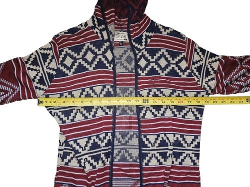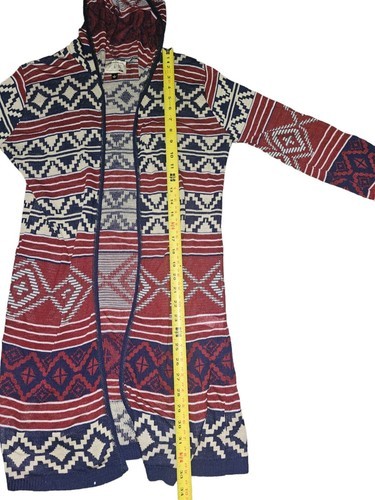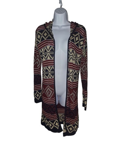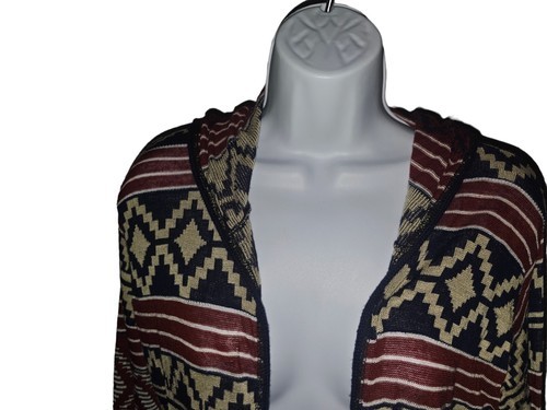Say What? Women’s Size L Long Sleeve Hooded Long Cardigan Aztec Boho