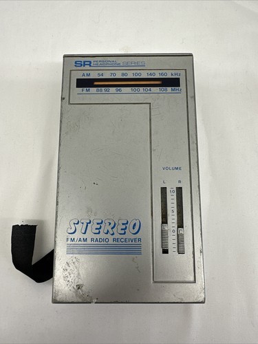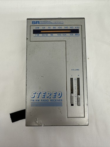 DOES NOT WORK. This is a vintage Sears AM/FM radio model 667 in silver color. It features dual headphone jacks and dual volume controls for left and right. The playable media format is AM/FM and it has an audio output for headphones. However, it is not in working condition and is missing its cover.