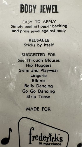 Fredrick’s Of Hollywood VTG Reusable Body Jewel 4 Self Stick 4 Colors