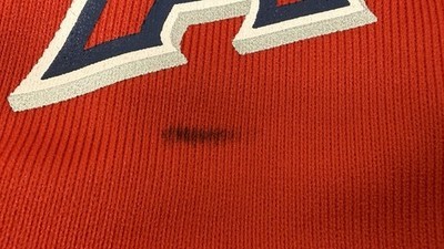 There a small black mark as shown in pics The Los Angeles Angels Team Jersey Tote Bag by Profanity By Littleearth is an officially licensed Major League Baseball product perfect for female fans of the team. Made in jersey material and featuring the team's signature color of red, this tote bag is a stylish and practical way to show support for the Los Angeles Angels. Perfect for carrying everyday essentials while representing your favorite baseball team.