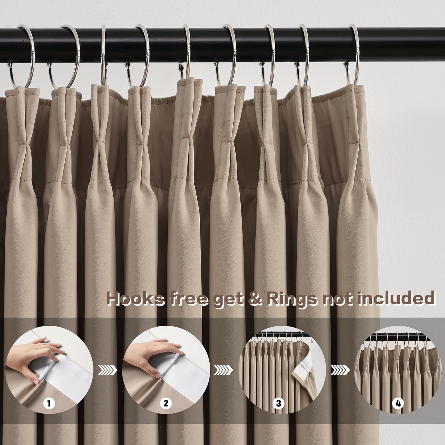 KEQIAOSUOCAI Pleated Blackout Curtain Drapes for Window 90" L - Triple Weave Energy Saving Solid Pinch Pleat Hook Thermal Room Divider Blackout Panels for Patio (72" Wide per Panel, 2 Panels, Khaki)
