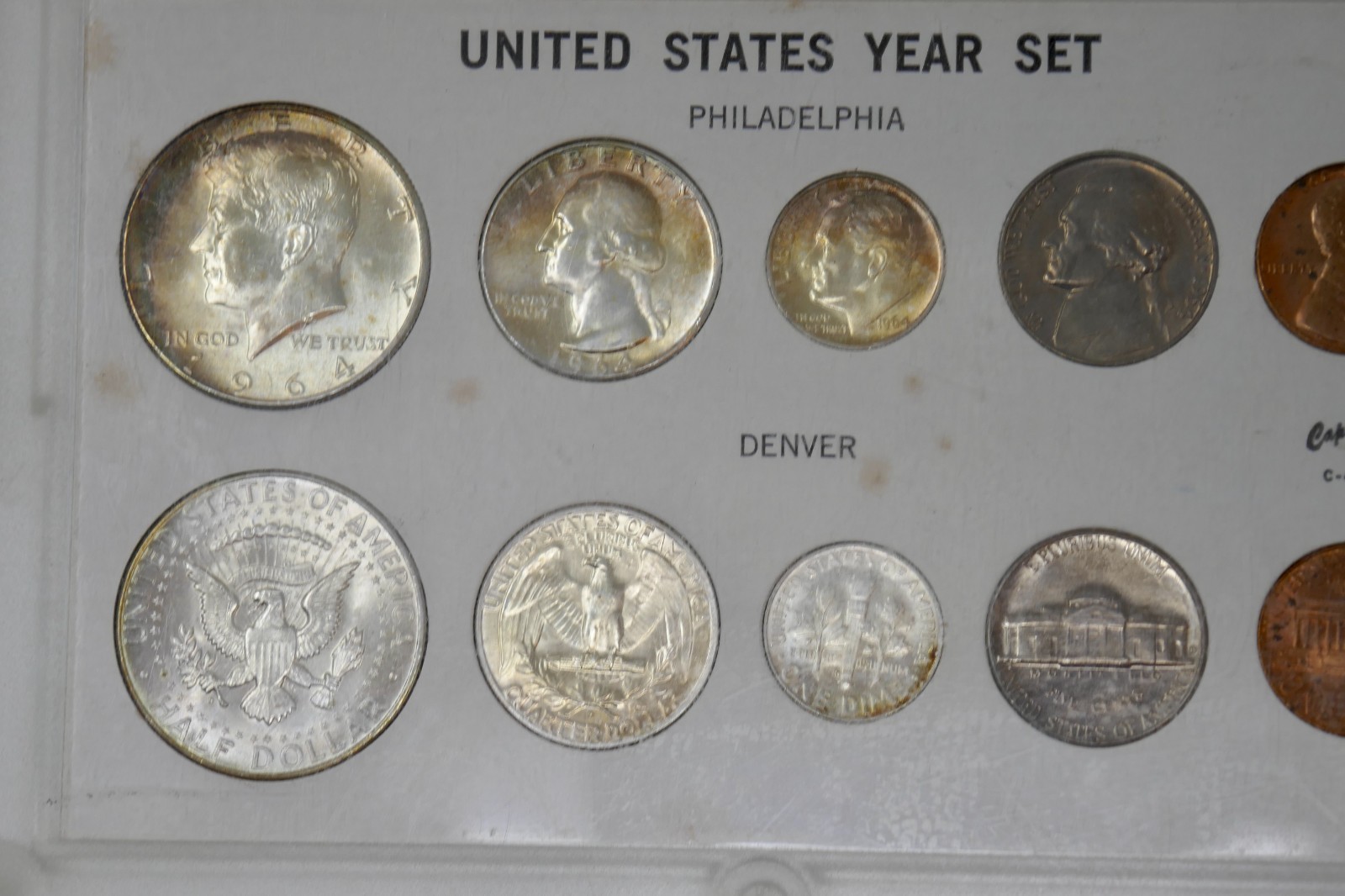 United States Year Set 1964 Philadelphia & Denver Mints Coins in Plastic Case