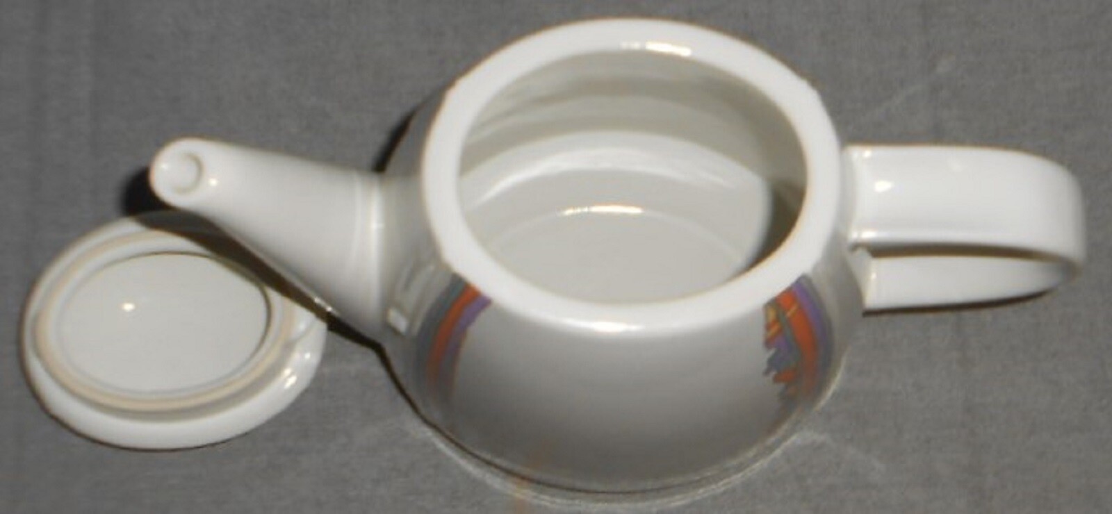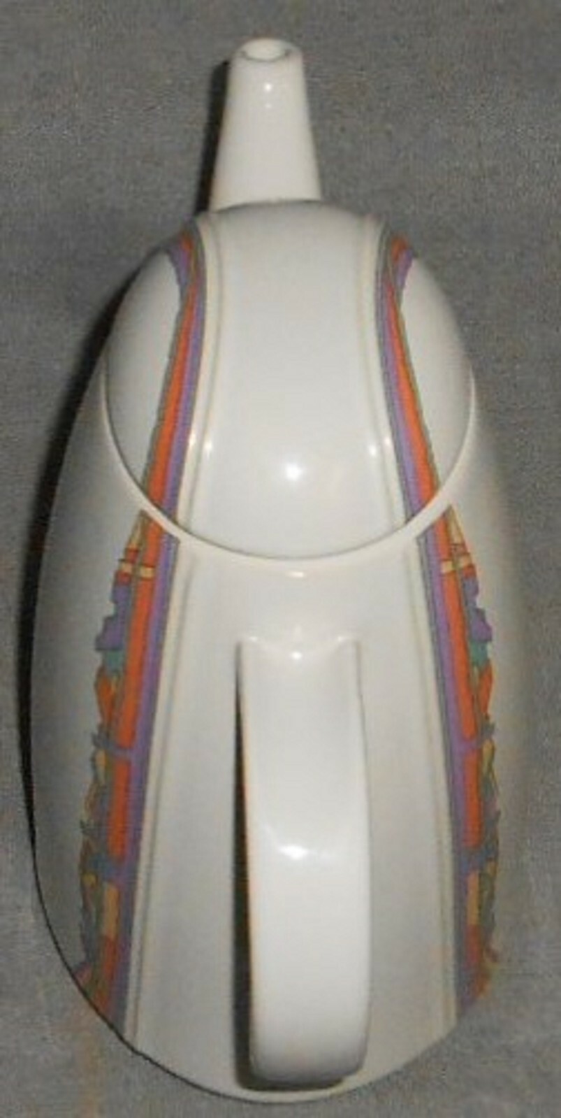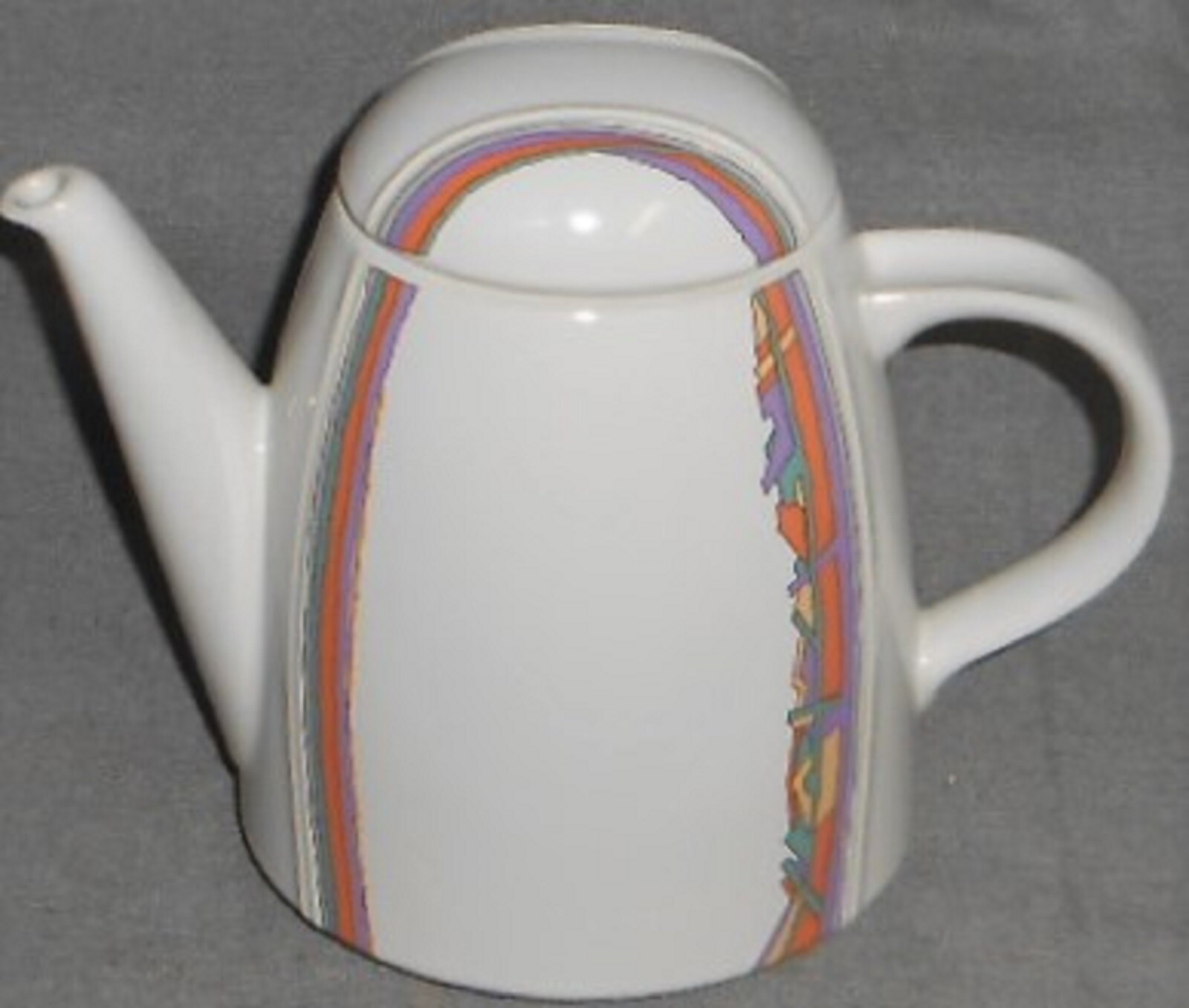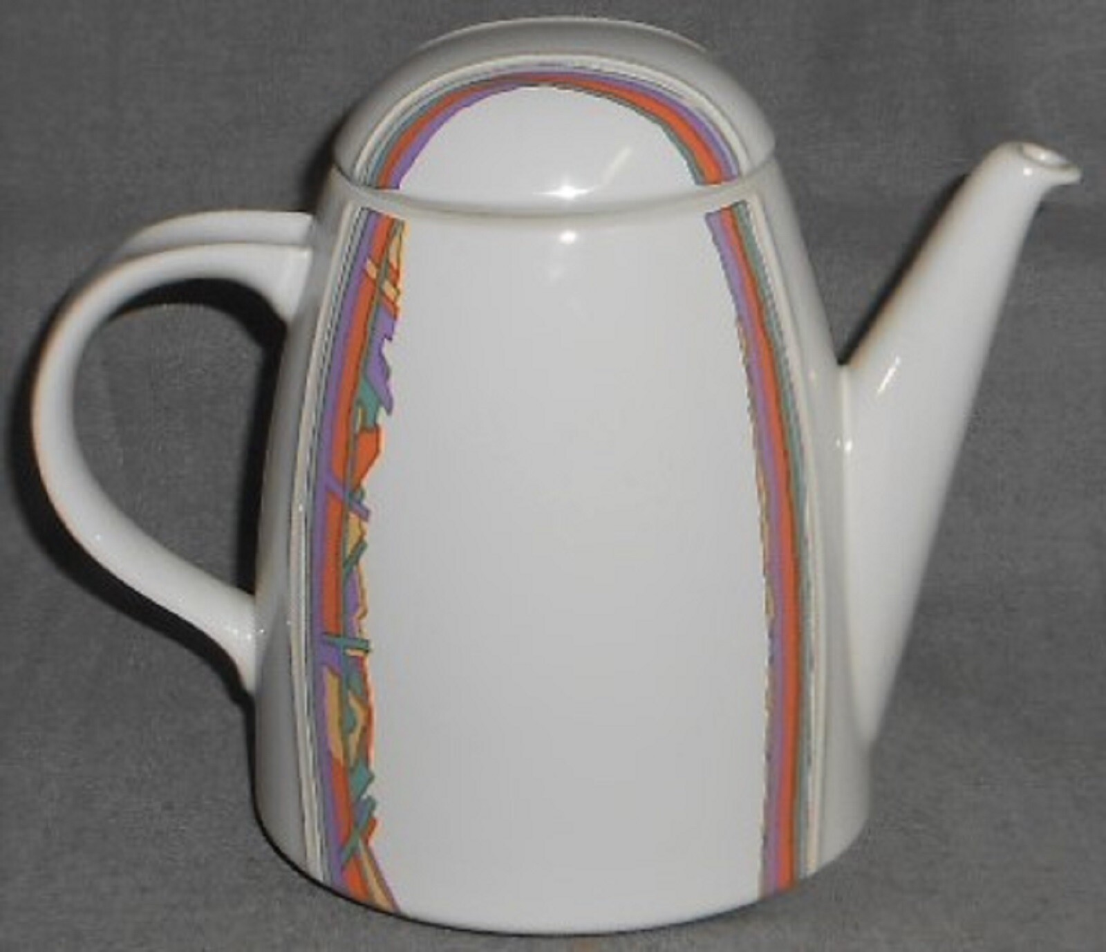 This is a great Modernist 48 oz Coffee Pot with a Memphis Design Style Graphics and Color from Thomas and Made in Germany. It measures approx 7" tall from table to rim (not including lid) x approx 9" across from handle to spout and it is in great pre-owned condition with no chips or damage.