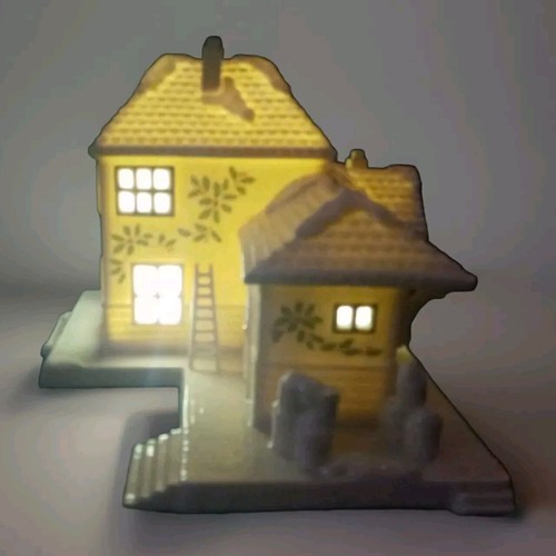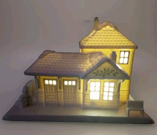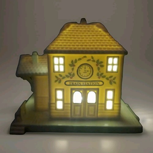 The porcelain train depot is lit up with intricate details and comes in a lovely box. Perfect for collectors or as a special holiday gift.