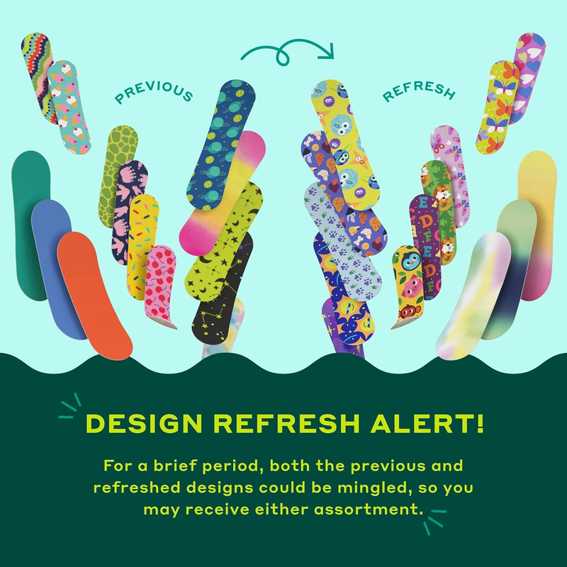 Packed full of patterns. This mighty 100ct refill pack comes with fourteen colors and patterns in three different sizes so you always have a favorite on hand. It?s also great for refilling your empty Welly tin?pour ?em on in! Because when you?re ready for anything, everything is possible. Welly is for everyone that was afraid to fall down, fail, get bumped, get scratched and did it anyway. Welly is for the wellness in all of us, however that looks, and for being prepared for whatever comes our way. We wear our bandages like badges of honor for a life fully lived. Our portable first aid kits are packed with essentials, so you have what you need, when you need it. And our signature Welly tins can be reused again and again?the possibilities are endless.