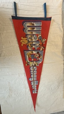 The product is a vintage full-size pennant from Walt Disney World featuring characters Mickey Mouse, Minnie Mouse, Donald Duck, Goofy, and Pluto. Released in 1980, this collectible item is a nostalgic piece of Disneyana that captures the essence of the beloved Disney franchise. With its classic design and iconic characters, this pennant would make a cherished memento for any Disney fan or collector of theme park souvenirs.
