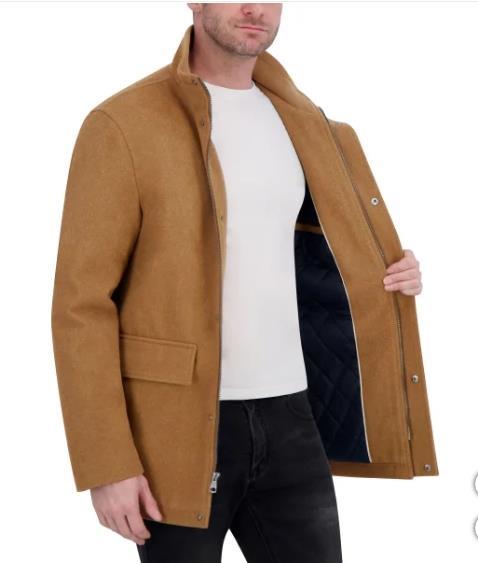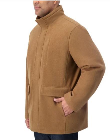Nautica Mens Coat Tan Full-Zip Pockets Stand-Up Collar Wool Blend Heavyweight