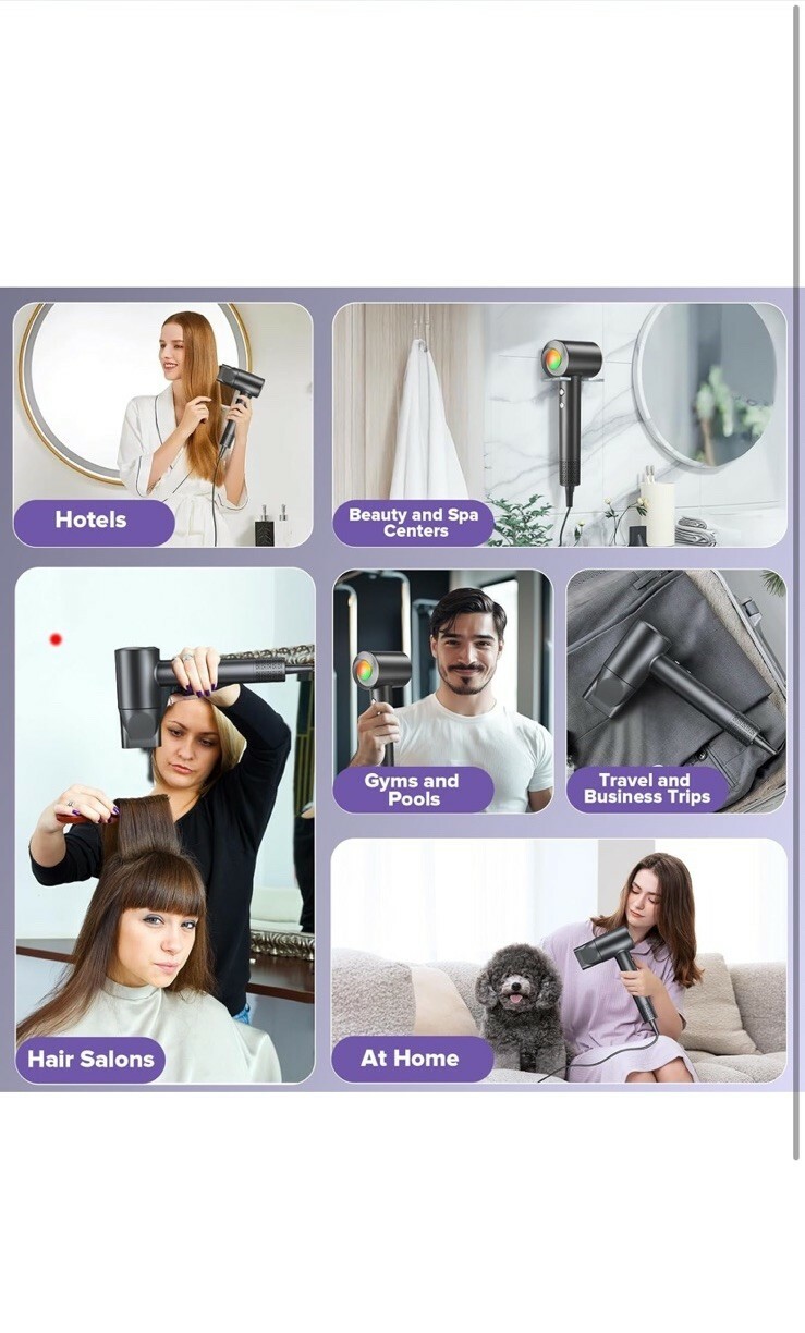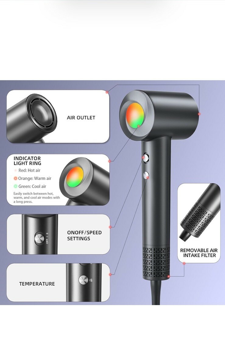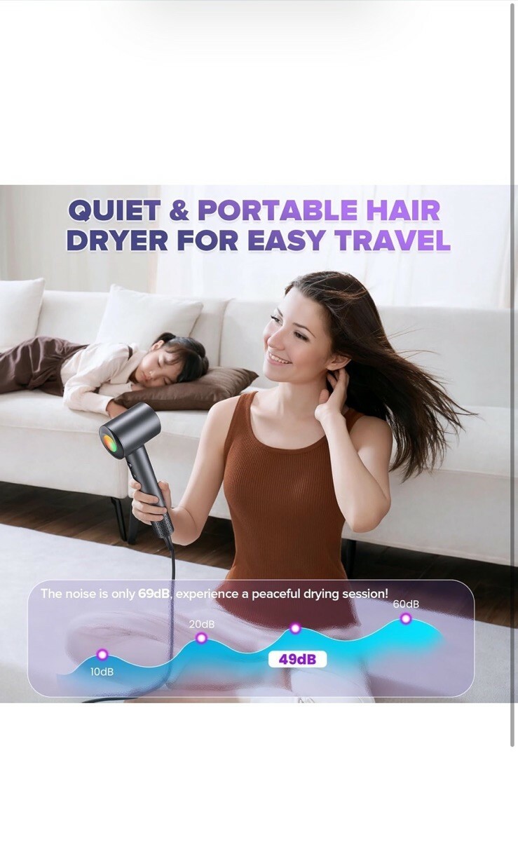 Hair Dryer 160000 RPM Professional High Speed Ionic Blow Dryer Low Noise.